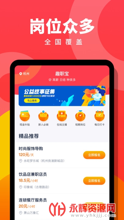 趣职宝app是一款非常好用的兼职软件,软件上提供了海量的兼职岗位,覆盖全国,并且都是真实可靠的,用户们可以随时在线查看,了解详细的岗位信息,可以任意的选择喜欢的岗位!感兴趣的朋友们就来下载体验吧!