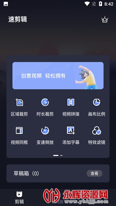 速剪辑app是一款专业的视频剪辑软件,这款软件的功能十分强大,支持视频裁剪、视频拼接、特效滤镜等等,各种编辑功能应有尽有,可以帮助用户们轻松的进行视频剪辑,并且软件上还提供了海量的视频模板,大家可以任意的挑选喜欢的进行使用,可以一键制作出个人专属的精彩视频!欢迎感兴趣的朋友们前来永辉资源网下载!