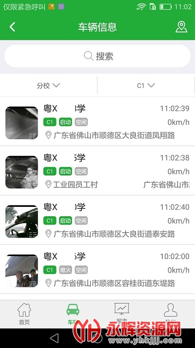 车辆管理:实时查看教练车信息,以及培训轨迹、实时视频、行车影像等信息。