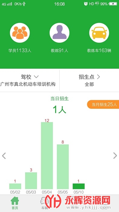 壹学车管家app是一款专为驾校管理者打造的驾校软件,用户们可以通过这款软件了解学员的报名信息和学车人数以及学车进度等,可以实时了解驾校的运营情况,帮助教练们更好的进行管理,欢迎感兴趣的朋友们前来永辉资源网下载!