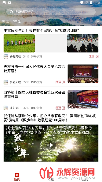 多彩天柱app是一款非常好用的资讯阅读平台,使用软件能让你快速了解本地的资讯热点,有需要的朋友们可以来永辉资源网下载使用哦!