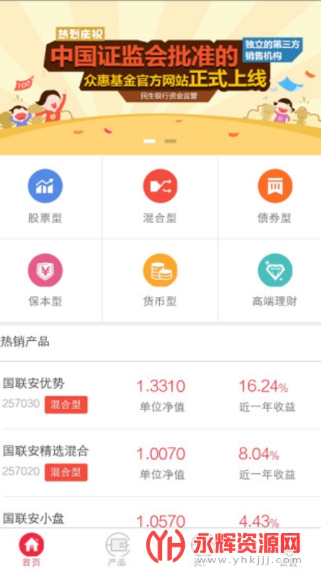 众惠基金交易app是一款十分优质的金融理财软件,软件中有着超多不同的基金产品,你可以查看近期的行情,有需要的朋友们不妨来永辉资源网下载使用哦!