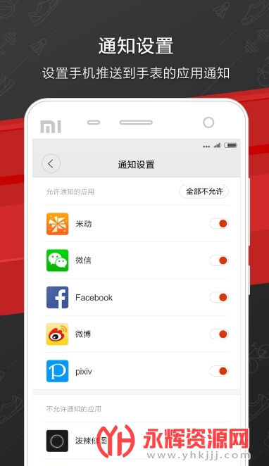 通知管理:可以设置屏蔽手机推送给手表的电话、短信及第三方应用通知,也可以智能地过滤掉所有不需要通知的应用;
