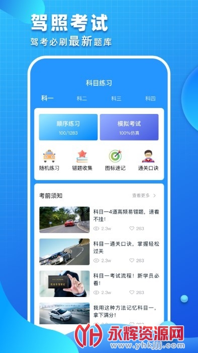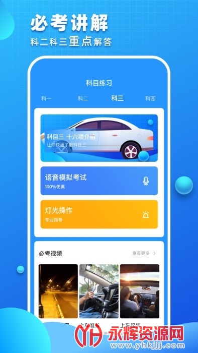 驾考驾照考试app是一款驾考学习软件,在上面有着非常实用的驾照考试技巧,能够很好的辅助学员考试学习,更加轻松的拿取驾照,其中的视频教学内容都是很详细的,还有着模拟练习考试等等供您参考,让您更加轻松的应对驾照考试,有需要的朋友现在就来下载使用吧!