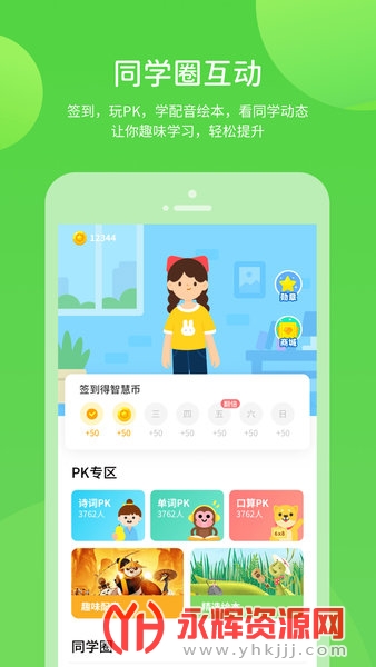 同学圈:去签到,玩pk,学配音绘本,看同学动态,让你趣味学习,快乐成长