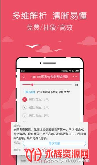 免费真题,提供历年国考和地方考真题,答案解析均由两位授权名师共同编辑审核,每道题都有细分知识点归属,每道题都有精心撰写的专业解析。无论你是有什么需求,公考对题库总能给你想要的。
