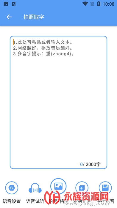 音频转文字助手app是一款非常好用的语音转文字工具软件,这款软件的功能十分强大,支持音频转文字、文字转录音和拍照取字等等,各种实用的功能应有尽有,可以帮助用户们轻松的进行音频文字转换,非常的方便好用!欢迎感兴趣的朋友们前来永辉资源网下载!