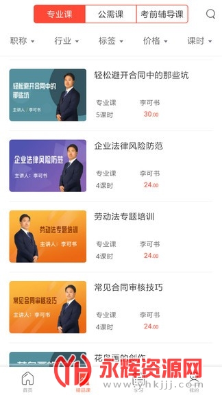 不同单位为专业人员配的学习课程,有专业课、公需课、考前辅导课。