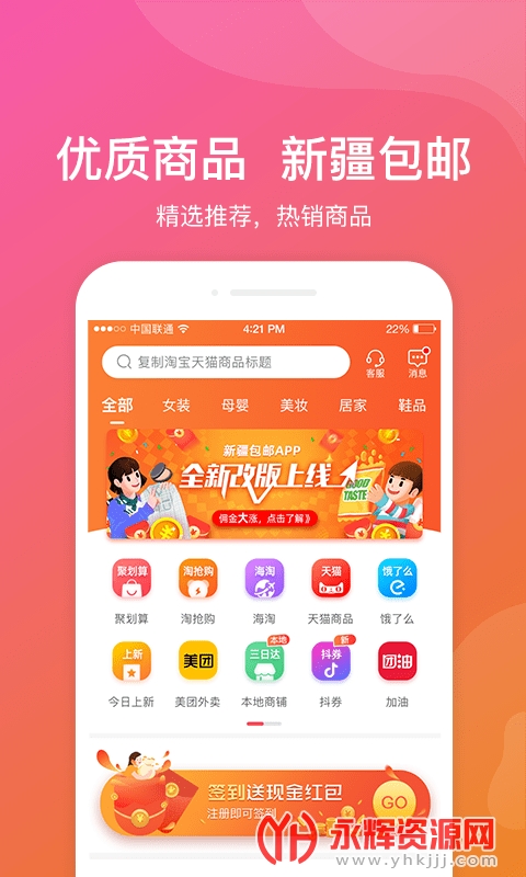 2.【今日上新】【好券优选】【品牌爆款】【人气宝贝】等多个导购版块全部新疆包邮