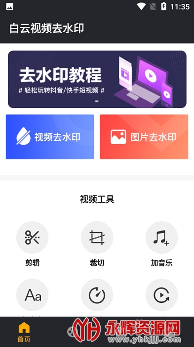 白云视频去水印是一款非常好用的视频去水印工具软件,这款软件的功能十分强大,支持多种视频编辑工具,视频裁剪、添加背景音乐和添加字幕等等,用户们可以通过这款软件一键去除视频中的水印,直接手机操作一键去除十分地方便简单,可以轻松制作各种精彩的视频!欢迎感兴趣的朋友们前来永辉资源网下载!