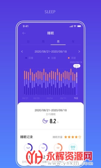 提供了睡眠记录统计,可以查看到你的睡眠质量情况;