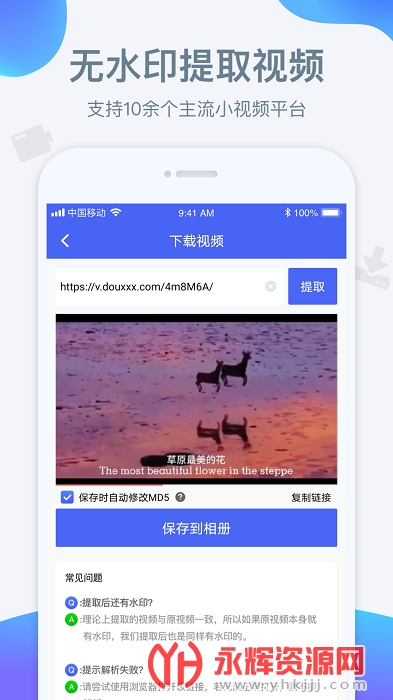 解析视频,解析的视频与原视频完全一致,而且支持从多个品台提取无痕水印视频。