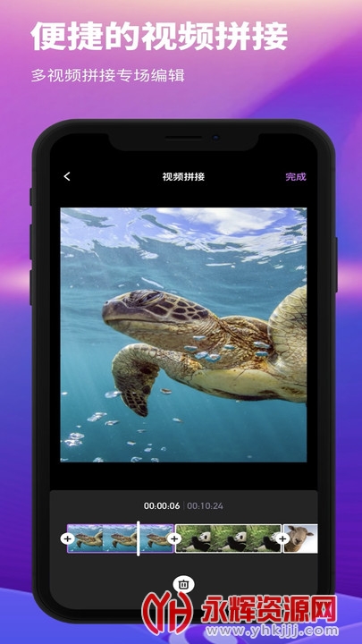 拼接视频,可以把多个视频拼接成为一个视频,让自己能够轻松完成视频的混剪。