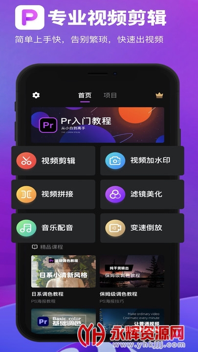 pr教程app是一款非常实用的视频编辑软件,软件上有着丰富的视频剪辑教程,包含了从新手入门到高手进阶的所有内容,可以帮助大家轻松学会剪辑技巧,轻松成为剪辑大师!欢迎感兴趣的朋友们前来永辉资源网下载!