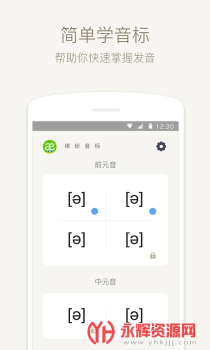 英语音标app是一款专业的英语音标学习软件,这款软件上有着海量的学习课程,并且讲解的非常详细,可以帮助用户们轻松的理解和学习,掌握每一个音标的正确发音!音标是学习英语口语和听力的基础,本软件将教会你基本的音标,帮你早日实现英语听力口语流利说!欢迎感兴趣的朋友们前来永辉资源网下载!