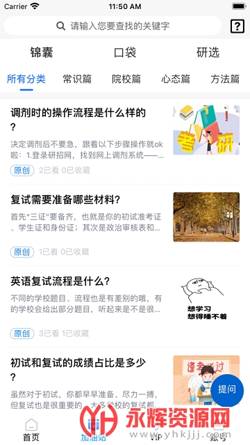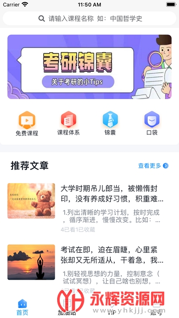 平台拥有免费课程,加油站,锦囊,口袋等等功能板块,可以帮助用户更好的考研学习。