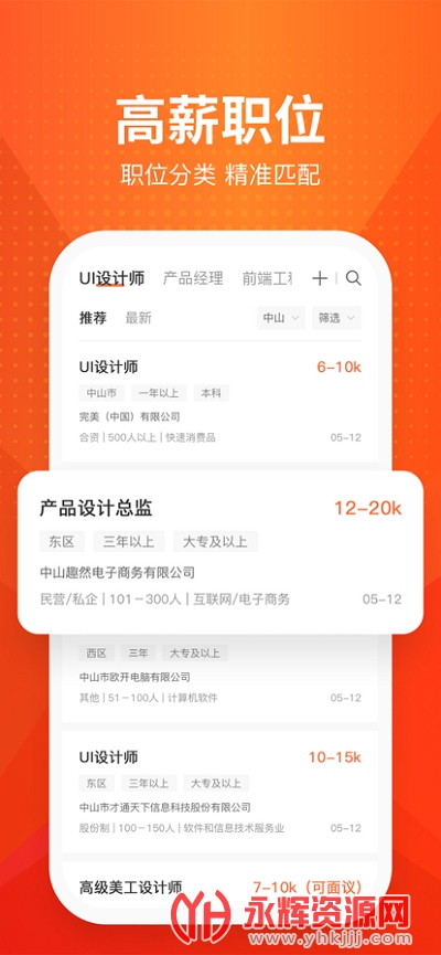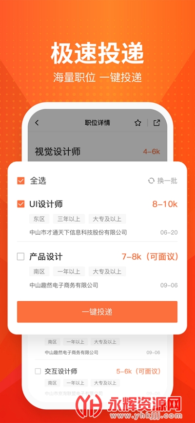 支持人工智能推荐,精准匹配感兴趣的职位,一键即可高效查找职位,一键点击投递简历, 迅速就能投递,轻松找工作。