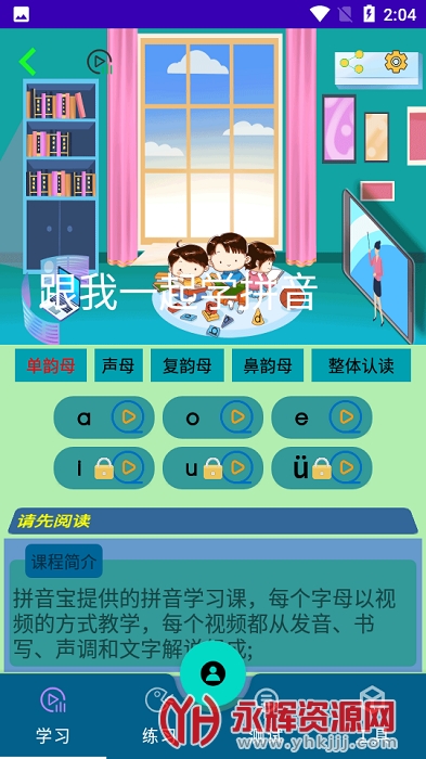 学前儿童拼音学习软件提供丰富的动画课程,画面生动。