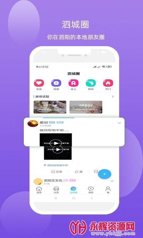 泗城相识app是一款专门为泗阳本地打造的生活服务平台,用户朋友可以在上面了解到本地的相关资讯内容,包涵了大量的吃喝玩乐信息,为您带来全方位的泗阳本地服务内容,另外还可以认识到同城的朋友哦,相互分享有趣的事情,是不是很有趣呢,有兴趣的朋友现在就来下载吧!