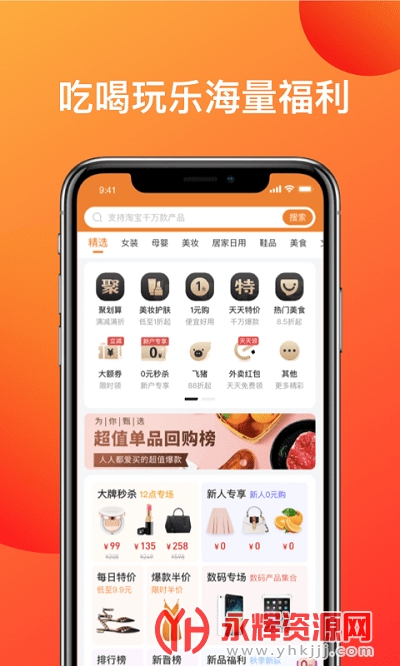 【9.9包邮】:每日精选百款超值折扣商品,全场9.9元全国包邮,物美价廉。