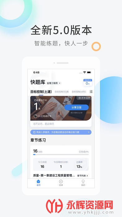 快题库app是职称考证必备精品题库,软件上有着海量的题库资源,和众多的精品直播课程,能够帮助用户们更加轻松的进行学习,能够快速的掌握各个知识点,通过刷题练习巩固学到的知识,并且软件还会自动为您生成错题本,方便大家随时查看做错的题目,进行复习,让学习更加高效!感兴趣的朋友们就来下载体验吧!