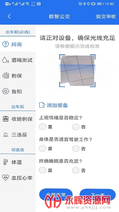 数智公交app是一款专为公交行业打造的软件,这款软件的功能强大,可以对司机进行车前检测,包含了体温测试、酒精测试等等,确保驾驶员能够健康驾驶,安全出车!为用户们带来一个舒适的乘车体验!欢迎感兴趣的朋友们前来永辉资源网下载!