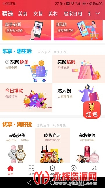 热销榜单,达人说,视频导购,今日大牌等,优享淘app提供丰富的购物版块。