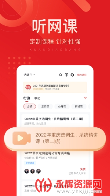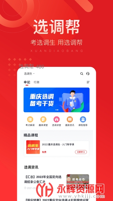 选调帮app是一款非常不错的掌上教学教务服务手机软件,软件中专门为选调考生打造了一个功能全面的线上学习平台,在这里为用户带来了各种类型的优质课程可以随时参考学习,特别的方便实用,有需要的朋友就快来永辉下载体验吧!