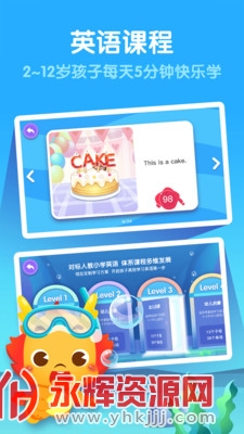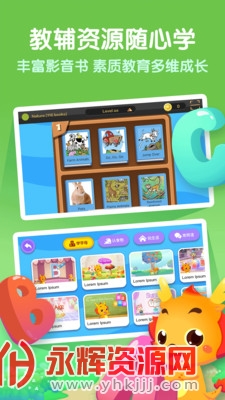 3、提供海量学习资源:全新的一站式英语学习平台,同步人教版英语的体系化课程、美国RAZ科学分龄绘本、趣味生活主题动画,还有好玩启智的互动故事,给孩子带来一个有趣有益的英语学习环境