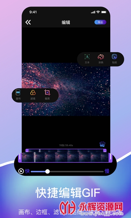 快捷编辑GIF:画布、边框、滤镜、贴纸、涂鸦、