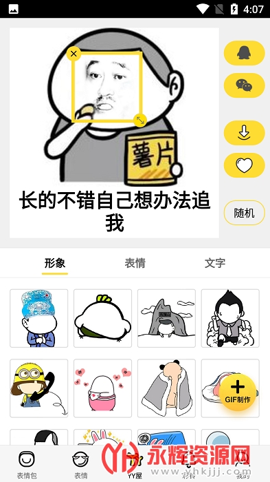 表情制作,你可以自定义制作喜欢的表情包,可以自己添加文字与图片。