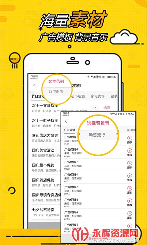 6.海量广告模板:广告促销,地摊叫卖,美食餐厅,产品宣传等众多行业模板任您选择。