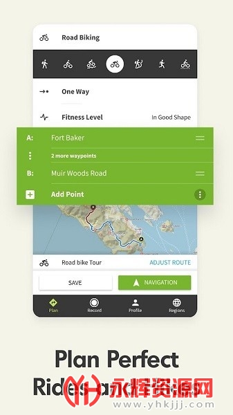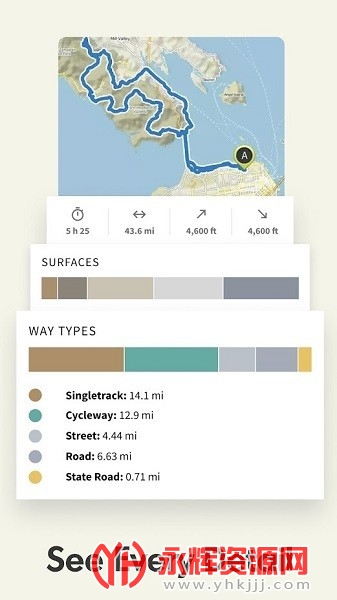 选择适合你运动的完美路线-公路自行车用光滑的沥青,山地自行车用单轨,远足旅行的无声单车径或远足时的自然步道。利用指尖信息来计划到最后一个细节。