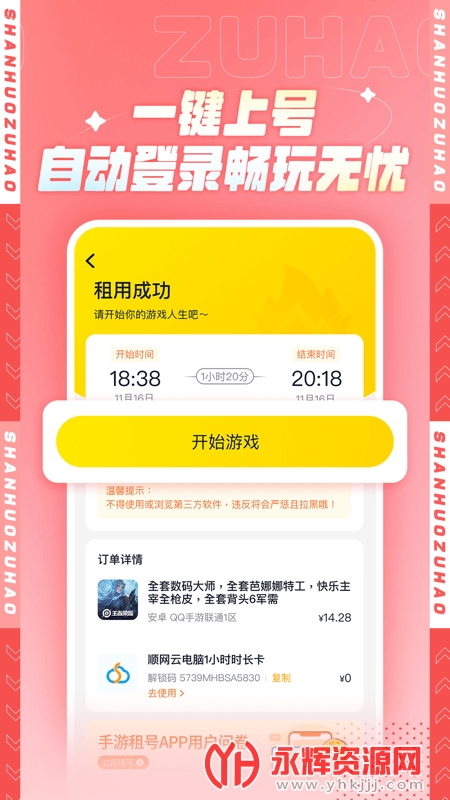 火山租号平台是非常不错的安全租号平台,平台上面有着大量的热门游戏可以供用户朋友任意浏览租号,用户完全可以放心使用,都是和平台关联的可以一键登录游戏,让您享受到快捷的租号体验,众多的游戏账号,需要租号的朋友可以看看有没有心仪的账号类型,欢迎来本站下载体验吧