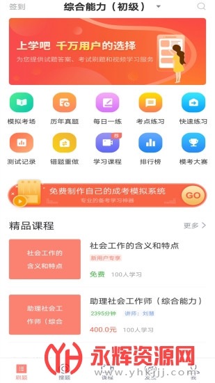 上学吧社工师题库APP是一款非常不错的掌上教学刷题题库手机软件,软件中专门为准备考社工师的朋友提供了非常丰富的线上教学课程和题库可以参考学习,还有专业的导师在线答疑,帮助学生掌握好每一个知识点,有需要的朋友就快来永辉下载体验吧!