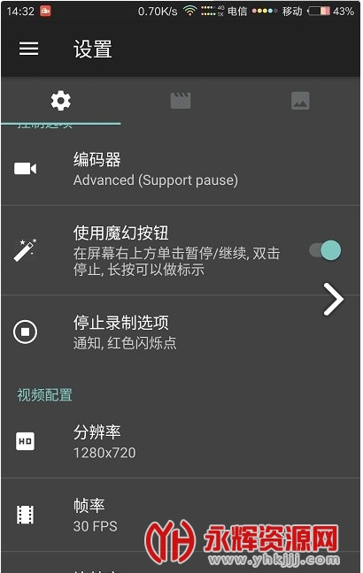 az录屏录像中文版app是一款超级火爆的屏幕录制软件,使用软件可以设置录制视频的分辨率、清晰度以及帧率各种,让你录制出来的视频效果非常优质,有需要的朋友们可以来永辉资源网下载哦!