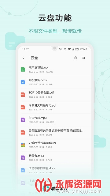 电脑内重要文档可使用PC版上传至云端并通过手机随身携带,让移动办公更加便捷!