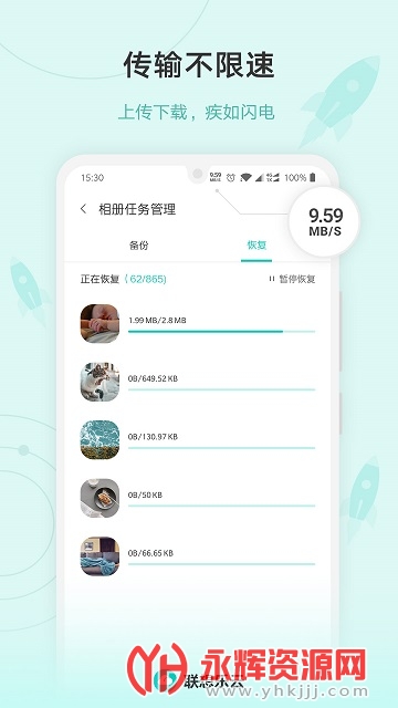 手机中各类数据(联系人、照片、视频、文件......)都可以安全上传至云盘,并且下载速度不受限!