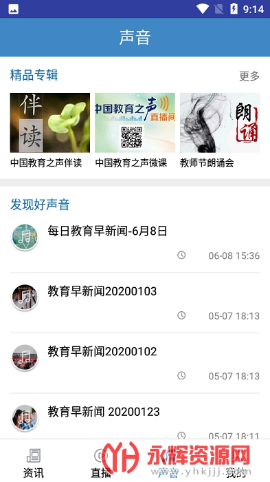 中国教育之声app是一款专为广大用户们打造的教育资讯平台,这里有着众多的教育相关资讯信息,包含了教育行业最新的动态资讯,带给用户们最新最热的资讯内容!大家可以随时在线查看了解最新的动态资讯!欢迎感兴趣的朋友们前来永辉资源网下载!