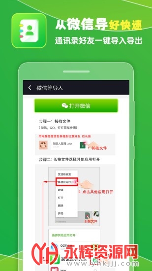 5.从微信、qq等软件极速的将excel联系人表格文件导入到手机中。