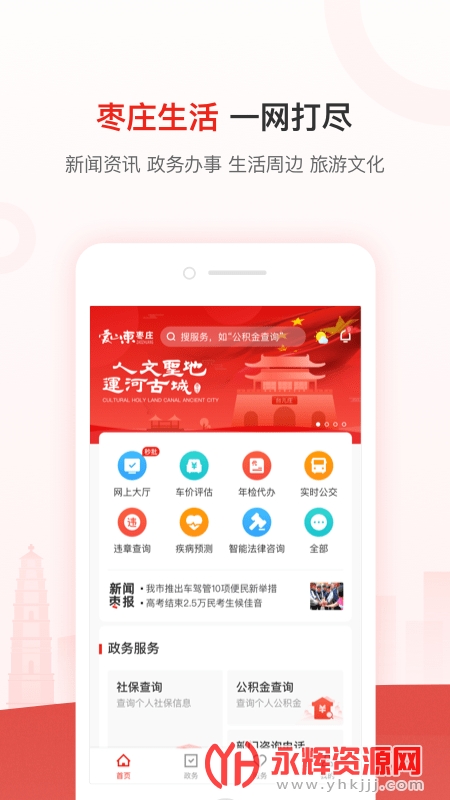 新闻资讯、政务指南、旅游活动等各类资讯智能推送,-部手机即可掌握枣庄大事小事