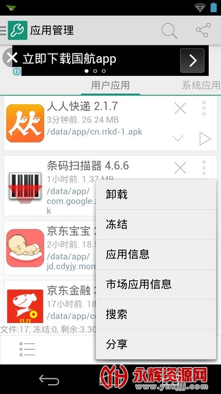 系统应用卸载,单个批量卸载内置预装程序!(需要root权限);