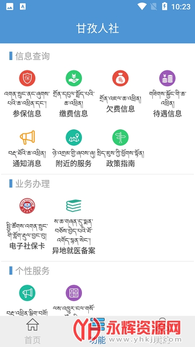 信息查询:参保信息、缴费信息、欠费信息、治疗信息、通知信息、就近服务、政策指南。