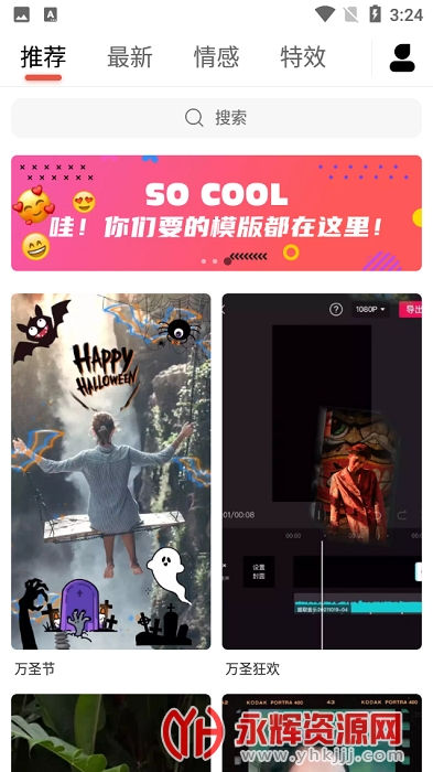 内容非常丰富,模板多种多样,可自由进行短视频的编辑。