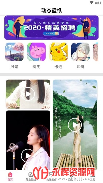 资源丰富,有明星、网络红人、游戏人物、动漫人物、动物萌宠、风景名胜等动态壁纸任你选择。