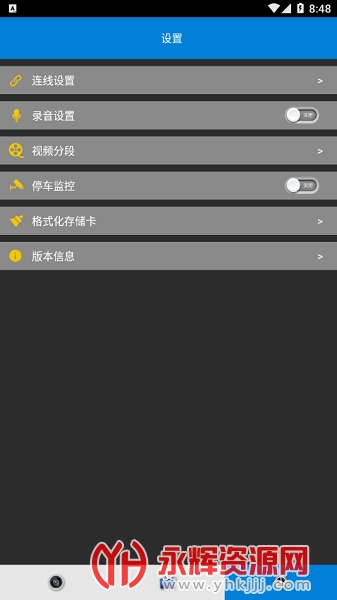 1、隐藏式Wi-Fi行车记录仪APP,通过Wi-Fi实现手机浏览,下载,设置控制及分享。