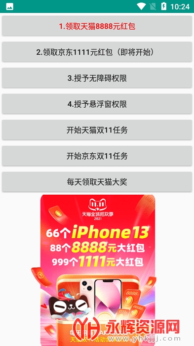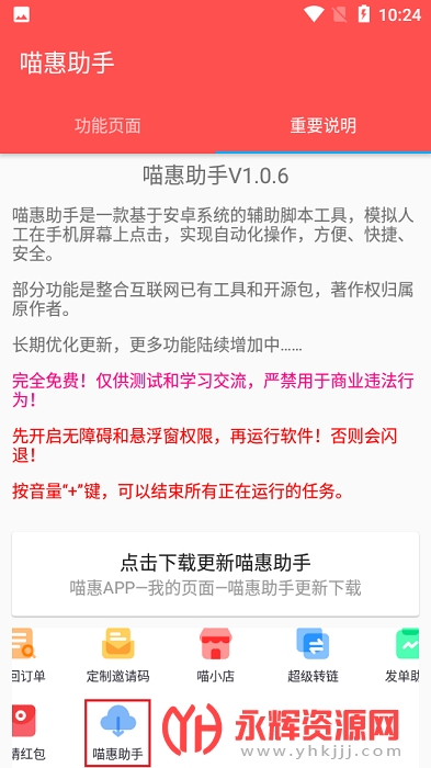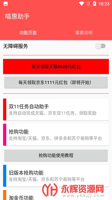 一款安卓喵惠助手,支持京东和淘宝双11任务每日一键自动完成(部分任务需手动)。