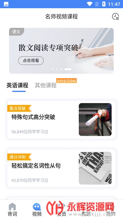 高中英语app是一款专为广大高中生打造的掌上英语学习软件,软件上有着丰富的英语学习知识,包含了英语词汇,英语语法等等,还有着众多的视频课程提供给大家,用户们可以随时在线观看学习,通过练习题目更好的巩固学到的知识内容,提高学习成绩!感兴趣的朋友们就来下载体验吧!