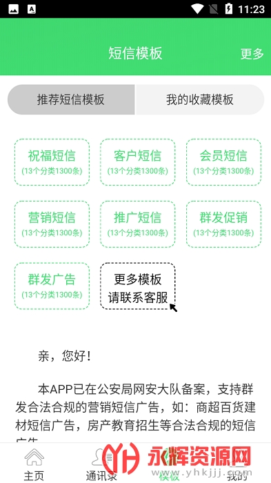 软件中根据各种节日提供给用户的短信模板内容,包括但不限于内涵段子、心灵鸡汤、邀请短信、亲友、名人名言等内容。