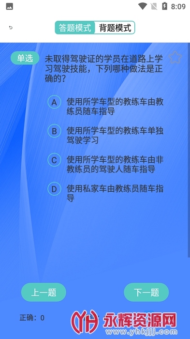 驾考学车宝典是一款专业的学车软件,软件上有着丰富的驾考理论知识,包含了科目一科目四的海量题库资源,用户们可以随时在线刷题练习,还可以切换背题模式,每一道题目都有着详细的解释!让学习更轻松!欢迎感兴趣的朋友们前来永辉资源网下载!